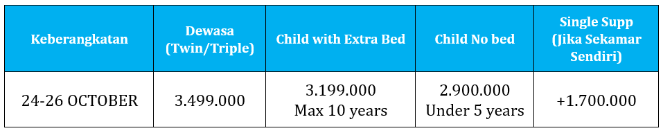 Keberangkatan Minimal 25 Pax(Didampingi 1 Tour Leader) Pendaftaran Deposit Rp. 3.500.000 (First Come First Serve)